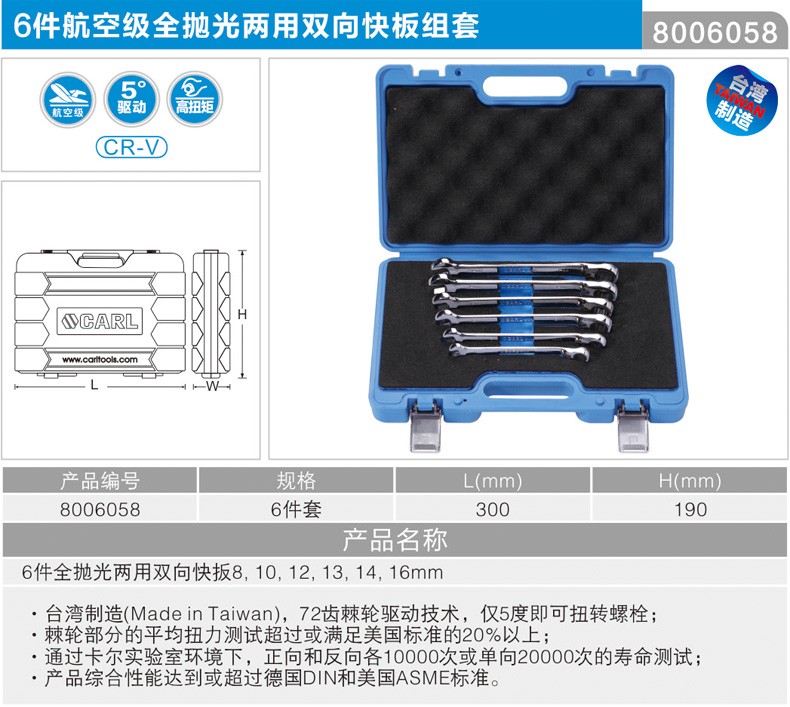首页 >> 产品分类 >>扳手系列 >>扳手组套 >> 6件航空级全抛光两用双向快板组套