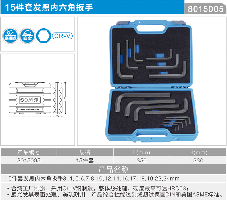 首页 >> 产品分类 >>六角扳手系列 >>内六角组套 >> 15件发黑内六角扳手组套