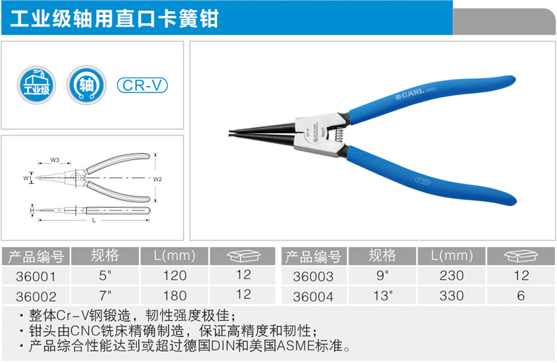 首页 >> 产品分类 >>钳子系列 >>卡簧钳 >> 工业级轴用直口卡簧钳
