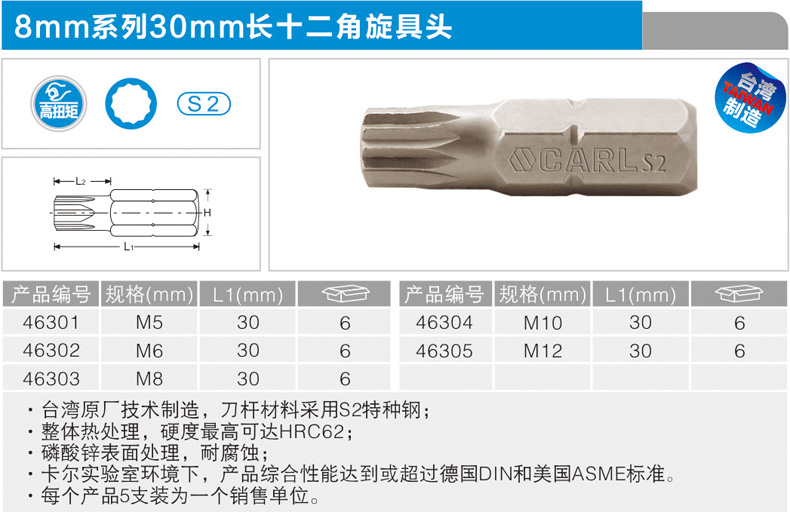 首页 >> 产品分类 >>螺丝批旋具头系列 >>旋具头 >> 8mm系列30mm长十二角旋具头