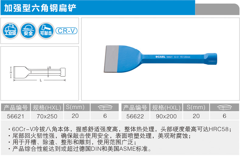 首页 >> 产品分类 >>敲击工具系列 >>冲凿/撬棍 >> 加强型六角钢扁铲